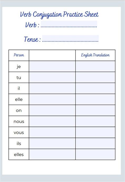 Free PDF French Verb Workbook Doc